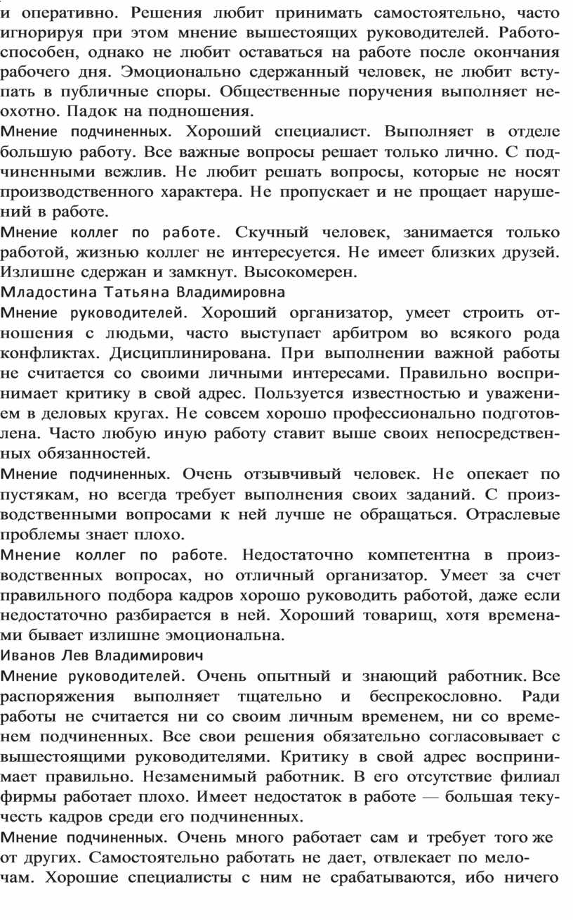 6) характеристика личности (черты характера, помогающие адап-тироваться к занимаемой должности, сфере услуг, к стилю ру-ководства);