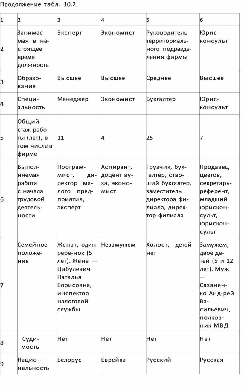 1.1. Каждый участник деловой игры обязан подробно изучить: 1) документальные характеристики кандидатур (табл. 10.2);
