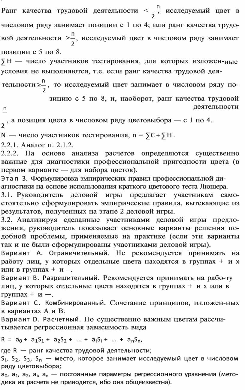 Вариант В. Разрешительный. Рекомендуется принимать на рабо-ту лиц, у которых отдельные цвета находятся в группах + и х или в группах + и —.