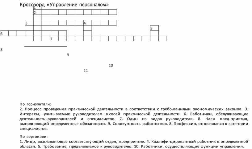 2. Процесс проведения практической деятельности в соответствии с требо-ваниями экономических законов. 3. Интересы, учитываемые руководителем в своей практической деятельности. 6. Работники, обслуживающие деятельность руководителей и специалистов. 7. Один из видов руководителя. 8. Член пред-приятия, выполняющий определенные обязанности. 9. Совокупность работни-ков. 8. Профессия, относящаяся к категории специалистов.