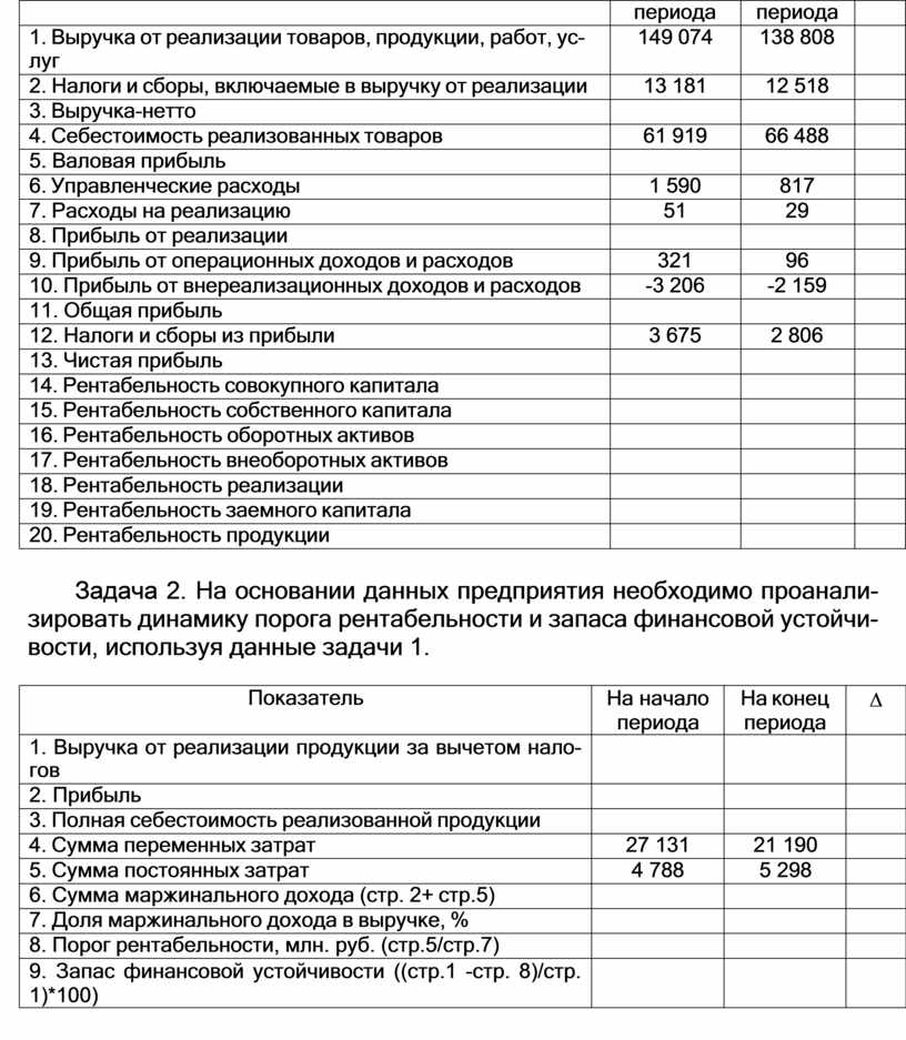 Задача 2. На основании данных предприятия необходимо проанали- зировать динамику порога рентабельности и запаса финансовой устойчи- вости, используя данные задачи 1.