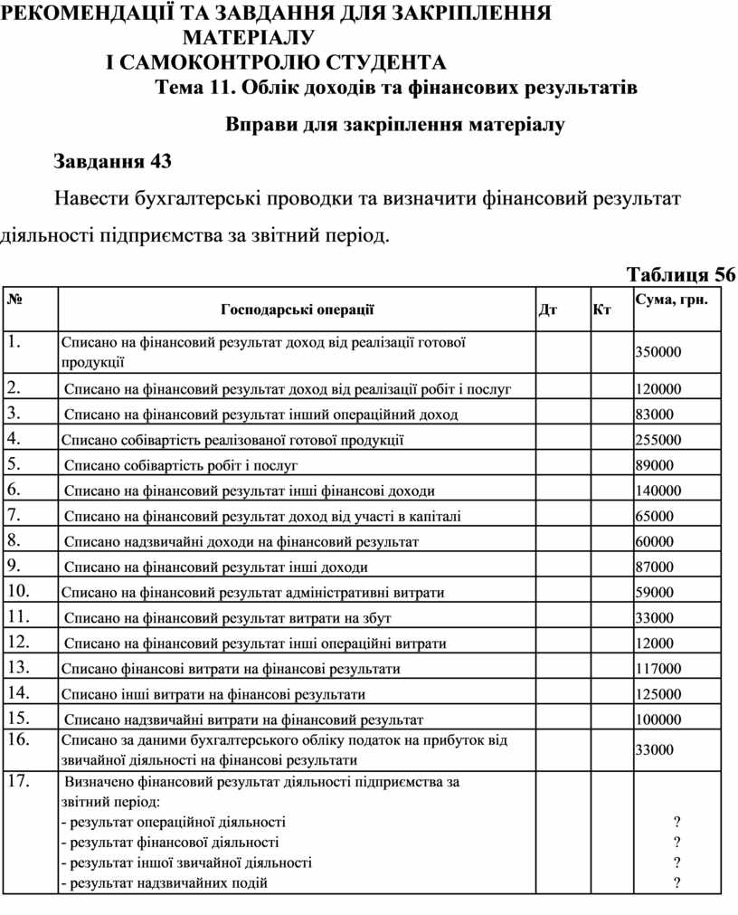 Тема 11. Облік доходів та фінансових результатів