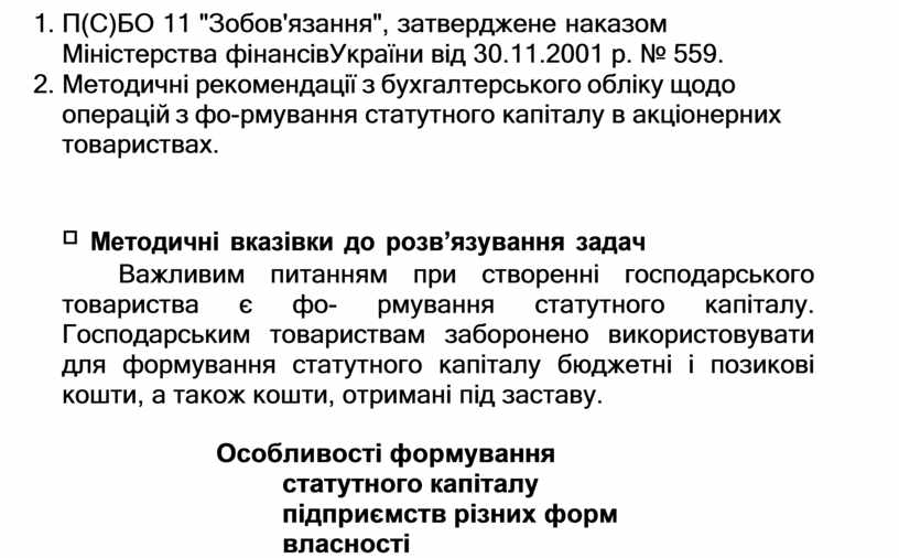 9. Методичні рекомендації з бухгалтерського обліку щодо операцій з фо- рмування статутного капіталу в акціонерних товариствах.