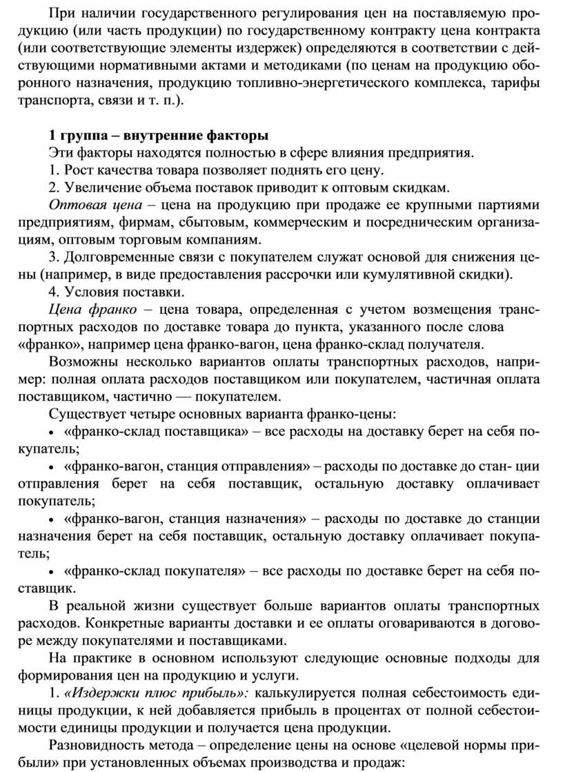 Цена франко – цена товара, определенная с учетом возмещения транс- портных расходов по доставке товара до пункта, указанного после слова
