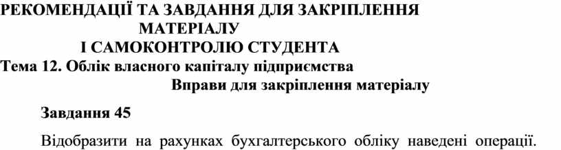 Відобразити на рахунках бухгалтерського обліку наведені операції.