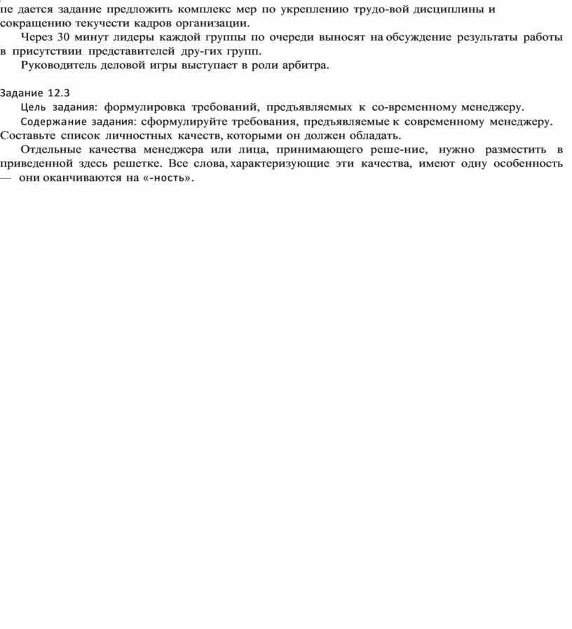пе дается задание предложить комплекс мер по укреплению трудо-вой дисциплины и сокращению текучести кадров организации.