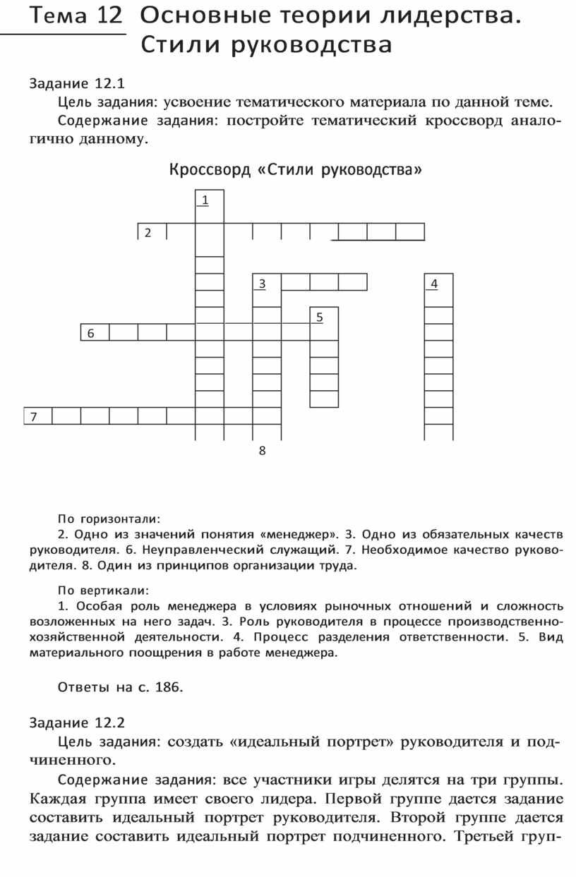 Кроссворд «Стили руководства»
