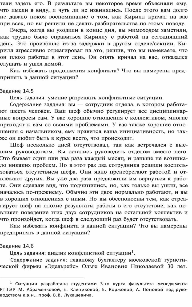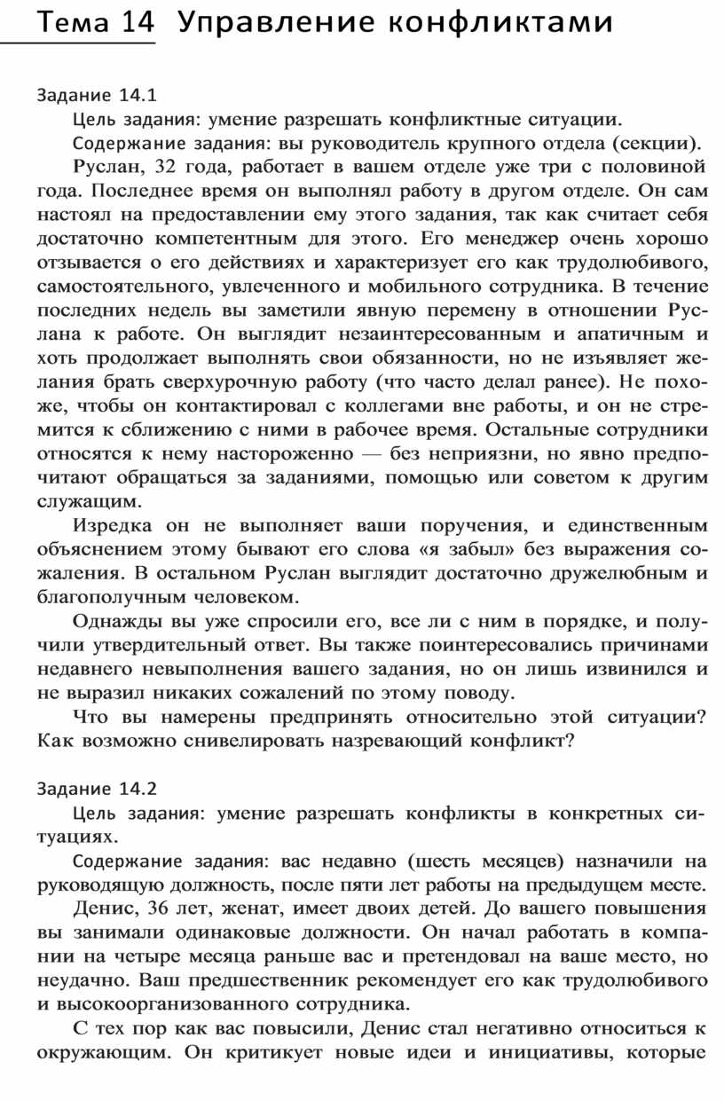 Цель задания: научиться работать в конфликтных ситуациях. Содержание задания: вы — руководитель крупного отдела, кото-