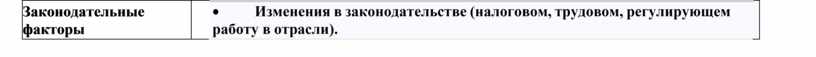 · Изменения в законодательстве (налоговом, трудовом, регулирующем работу в отрасли). |