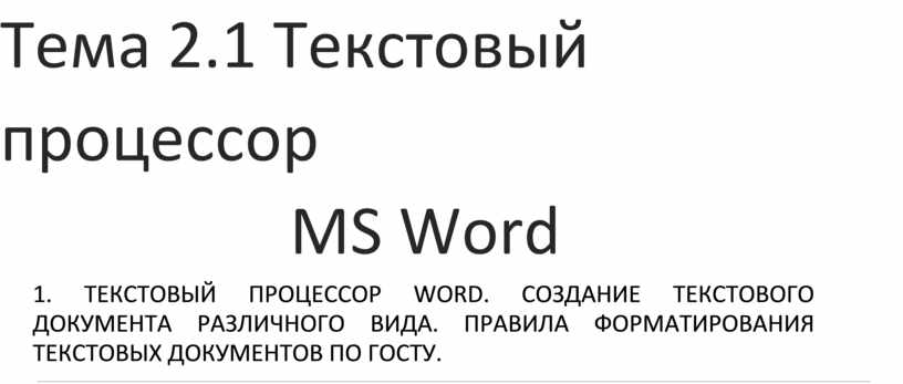 1. ТЕКСТОВЫЙ ПРОЦЕССОР WORD. СОЗДАНИЕ ТЕКСТОВОГО ДОКУМЕНТА РАЗЛИЧНОГО ВИДА. ПРАВИЛА ФОРМАТИРОВАНИЯ ТЕКСТОВЫХ ДОКУМЕНТОВ ПО ГОСТУ.