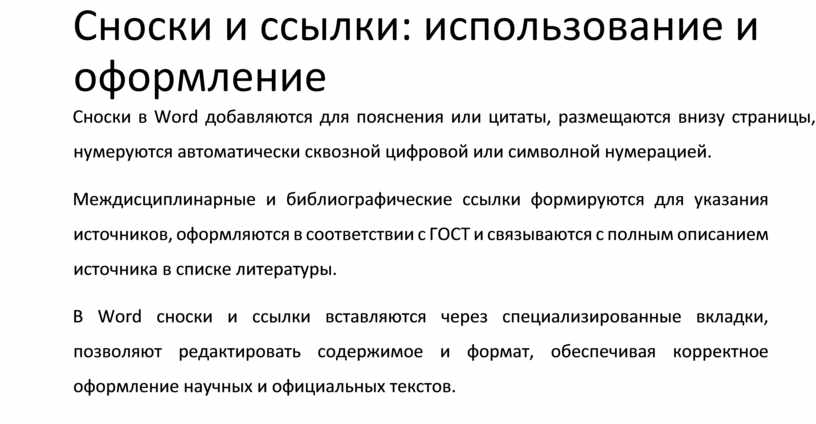 В Word сноски и ссылки вставляются через специализированные вкладки, позволяют редактировать содержимое и формат, обеспечивая корректное оформление научных и официальных текстов.