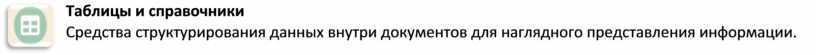 Средства структурирования данных внутри документов для наглядного представления информации.