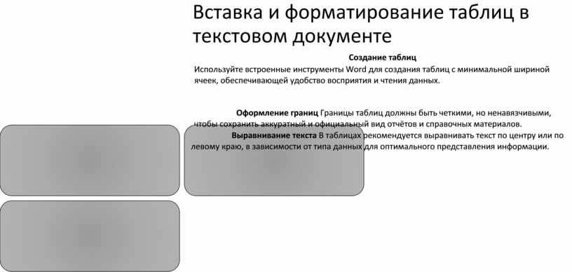 Оформление границ Границы таблиц должны быть четкими, но ненавязчивыми, чтобы сохранить аккуратный и официальный вид отчётов и справочных материалов.