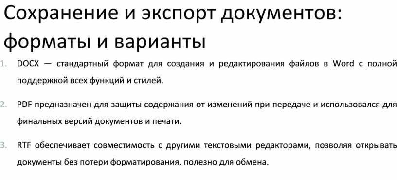 1. DOCX — стандартный формат для создания и редактирования файлов в Word с полной поддержкой всех функций и стилей.