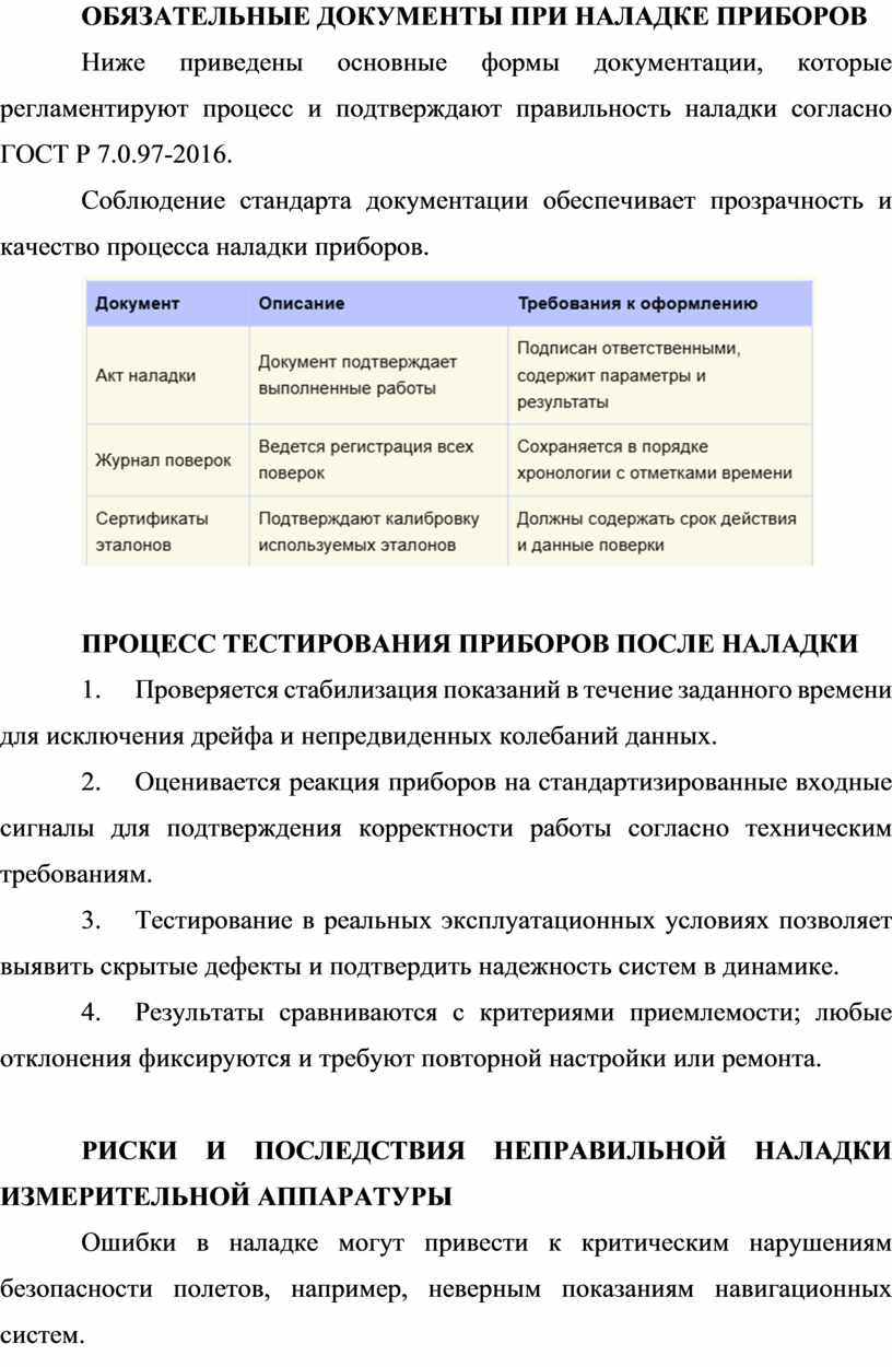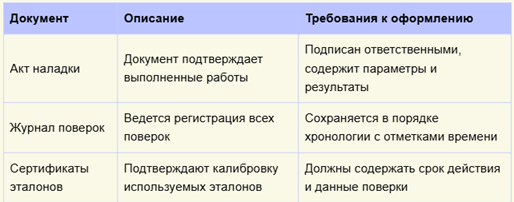 Соблюдение стандарта документации обеспечивает прозрачность и качество процесса наладки приборов.