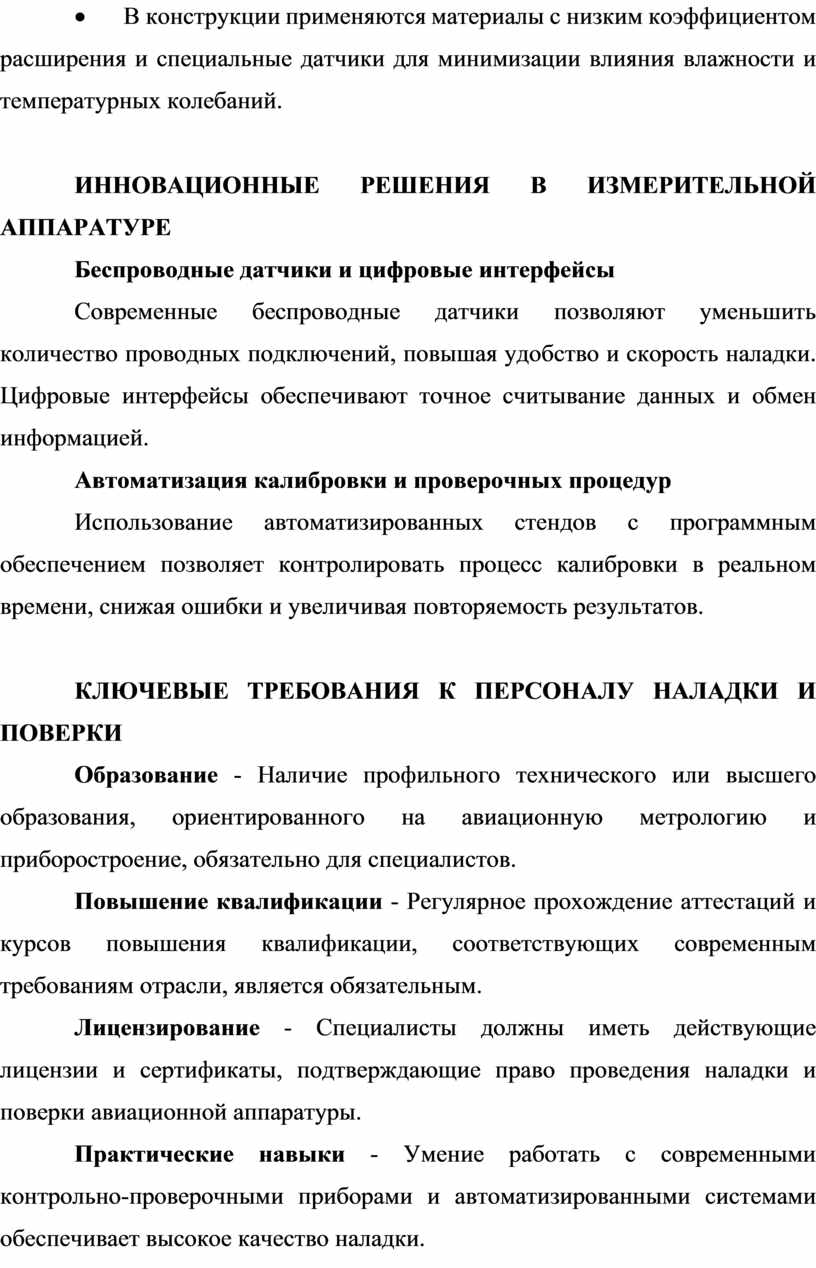 Образование - Наличие профильного технического или высшего образования, ориентированного на авиационную метрологию и приборостроение, обязательно для специалистов.