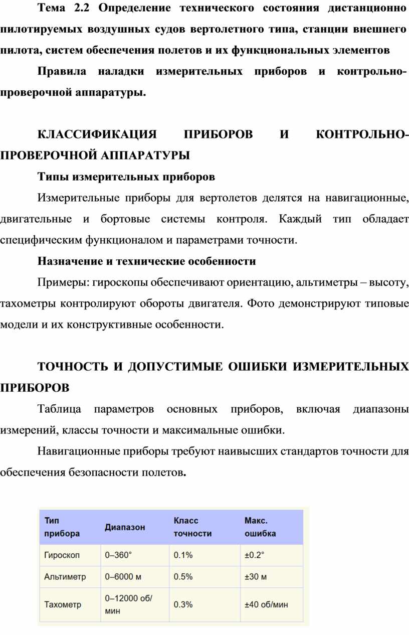 Тема 2.2 Определение технического состояния дистанционно пилотируемых воздушных судов вертолетного типа, станции внешнего пилота, систем обеспечения полетов и их функциональных элементов
