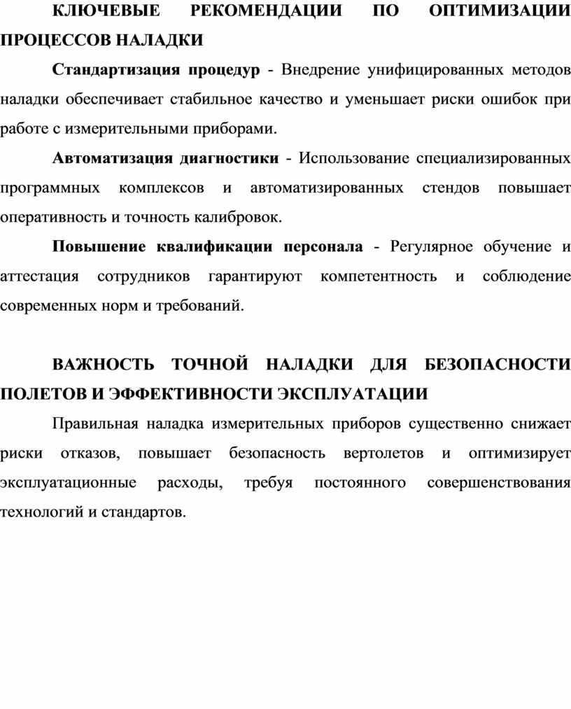 Правильная наладка измерительных приборов существенно снижает риски отказов, повышает безопасность вертолетов и оптимизирует эксплуатационные расходы, требуя постоянного совершенствования технологий и стандартов.