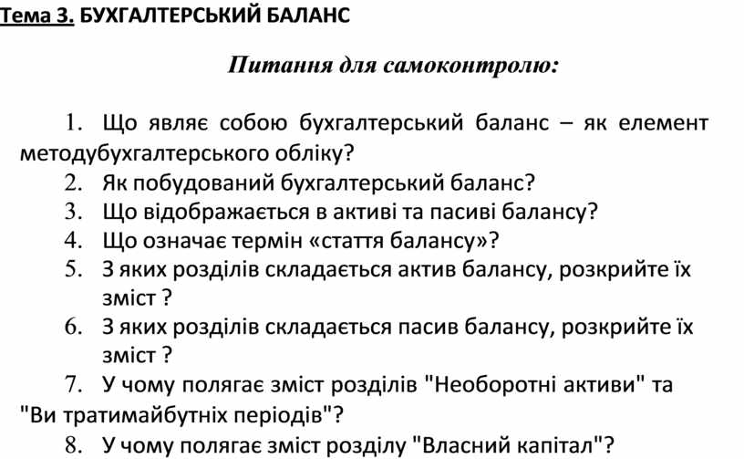 Тема 3. БУХГАЛТЕРСЬКИЙ БАЛАНС