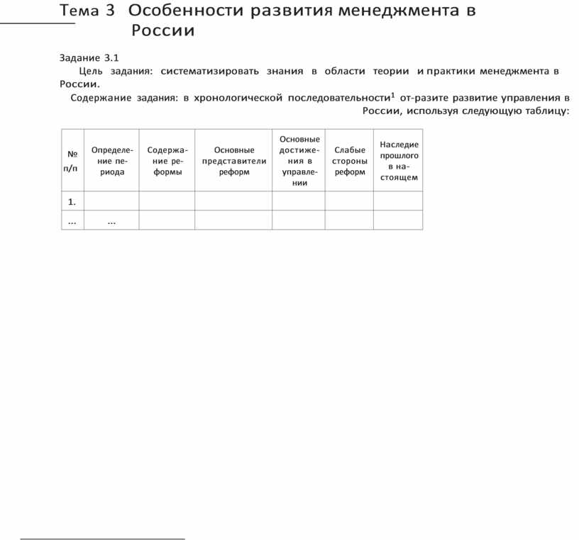 Цель задания: систематизировать знания в области теории и практики менеджмента в России.