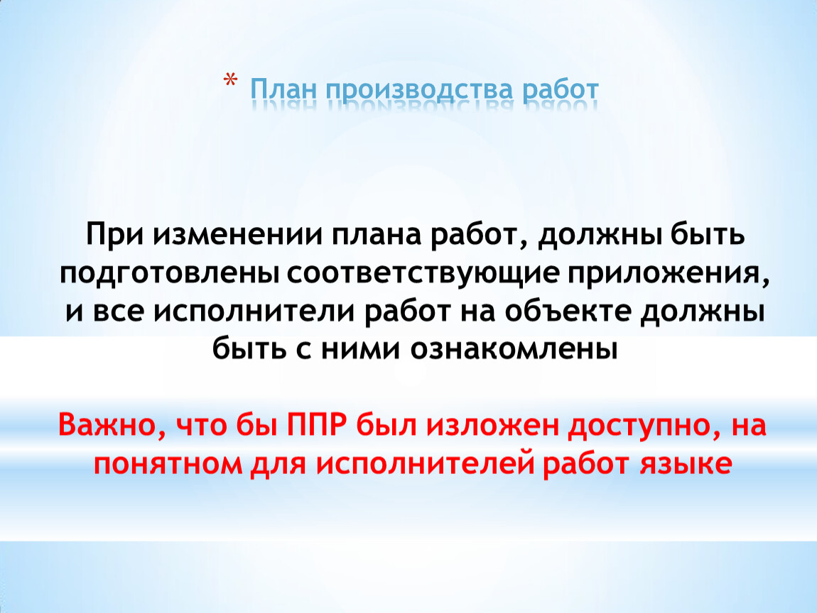 ППР - это документ, регламентирующий организацию производства строительных и монтажных работ. Описывает технологию работ.