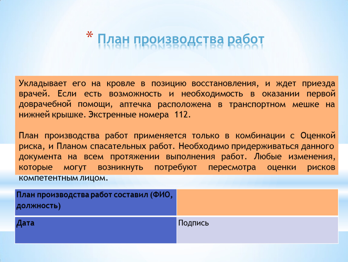 риска, и Планом спасательных работ. Необходимо придерживаться данного