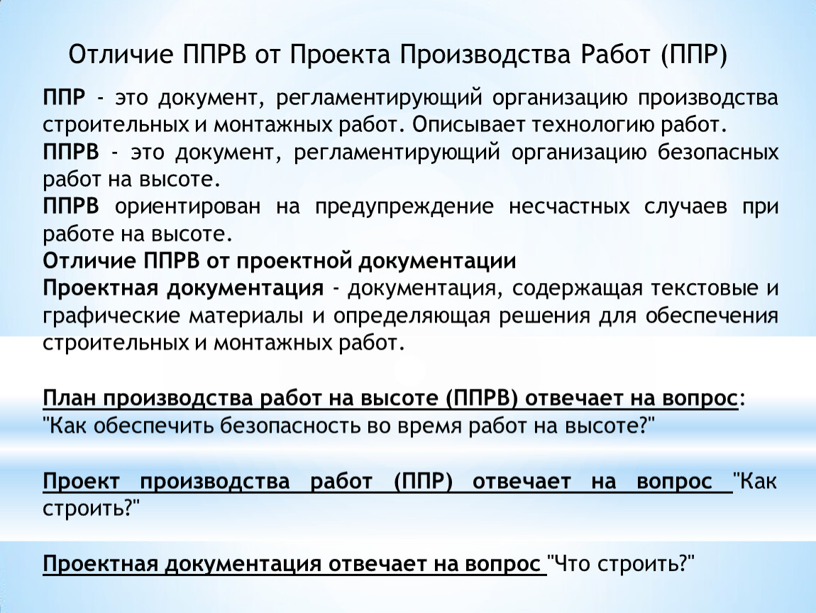 Отличие ППРВ от Проекта Производства Работ (ППР)