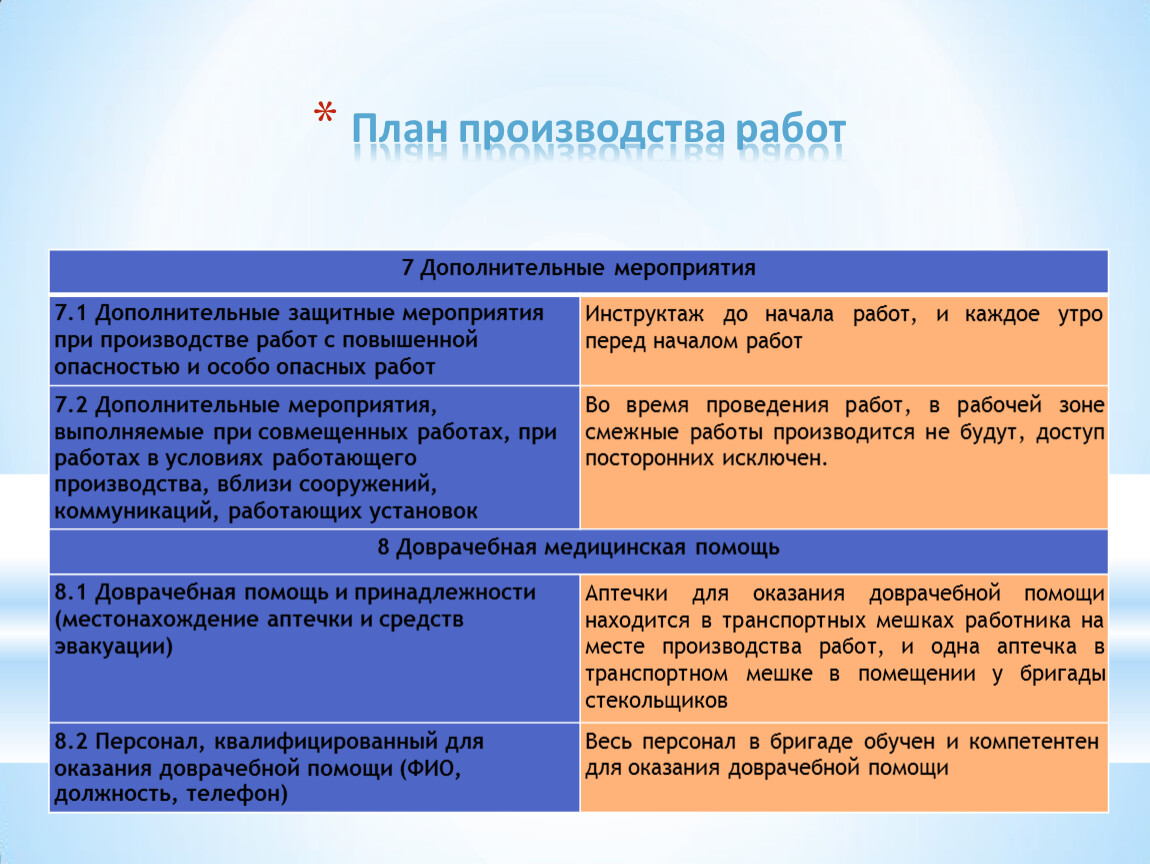 дополнительные защитные мероприятия при производстве работ с повышенной опасностью и особо опасных работ.