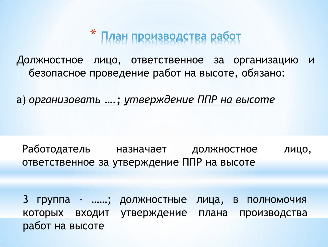 Работодатель назначает должностное ответственное за утверждение ППР на высоте
