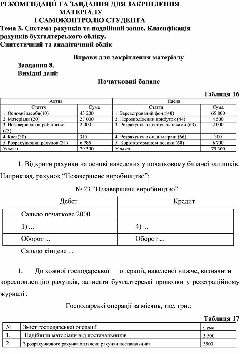 Тема 3. Система рахунків та подвійний запис. Класифікація рахунків бухгалтерського обліку.
