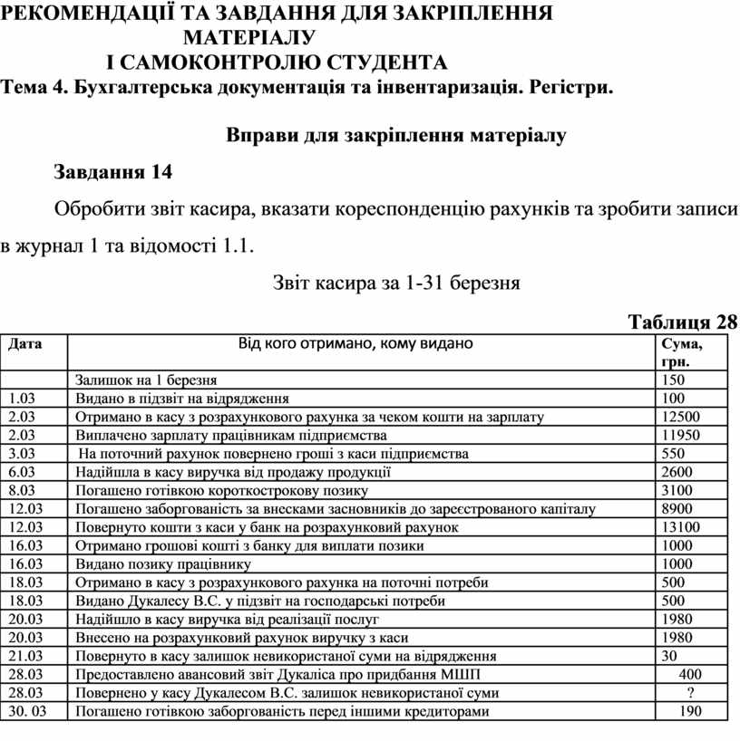 Тема 4. Бухгалтерська документація та інвентаризація. Регістри.