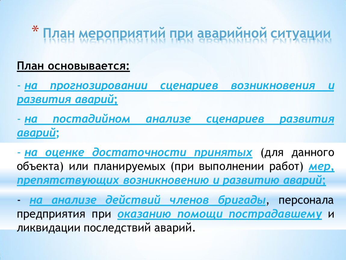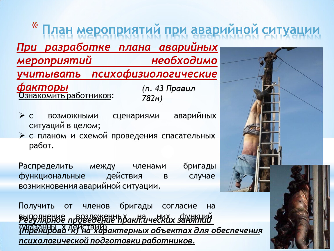 При разработке плана аварийных мероприятий необходимо учитывать психофизиологические