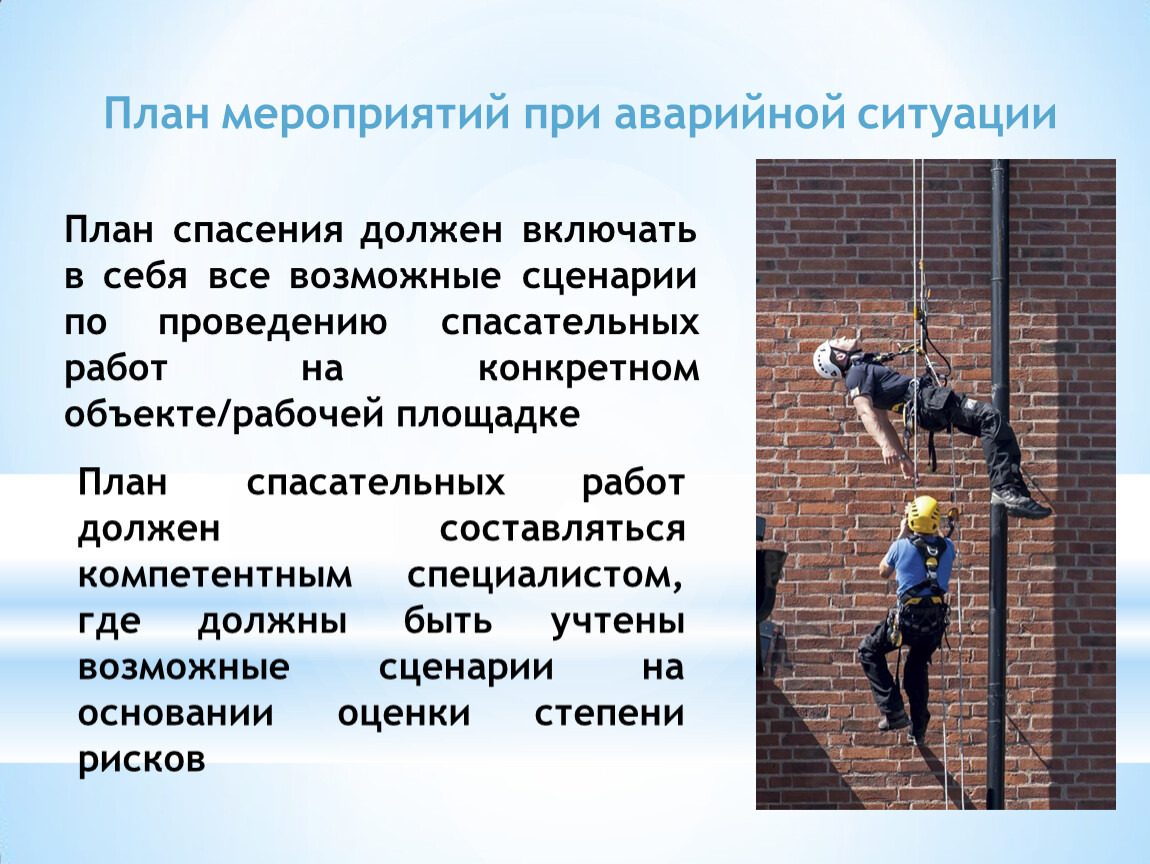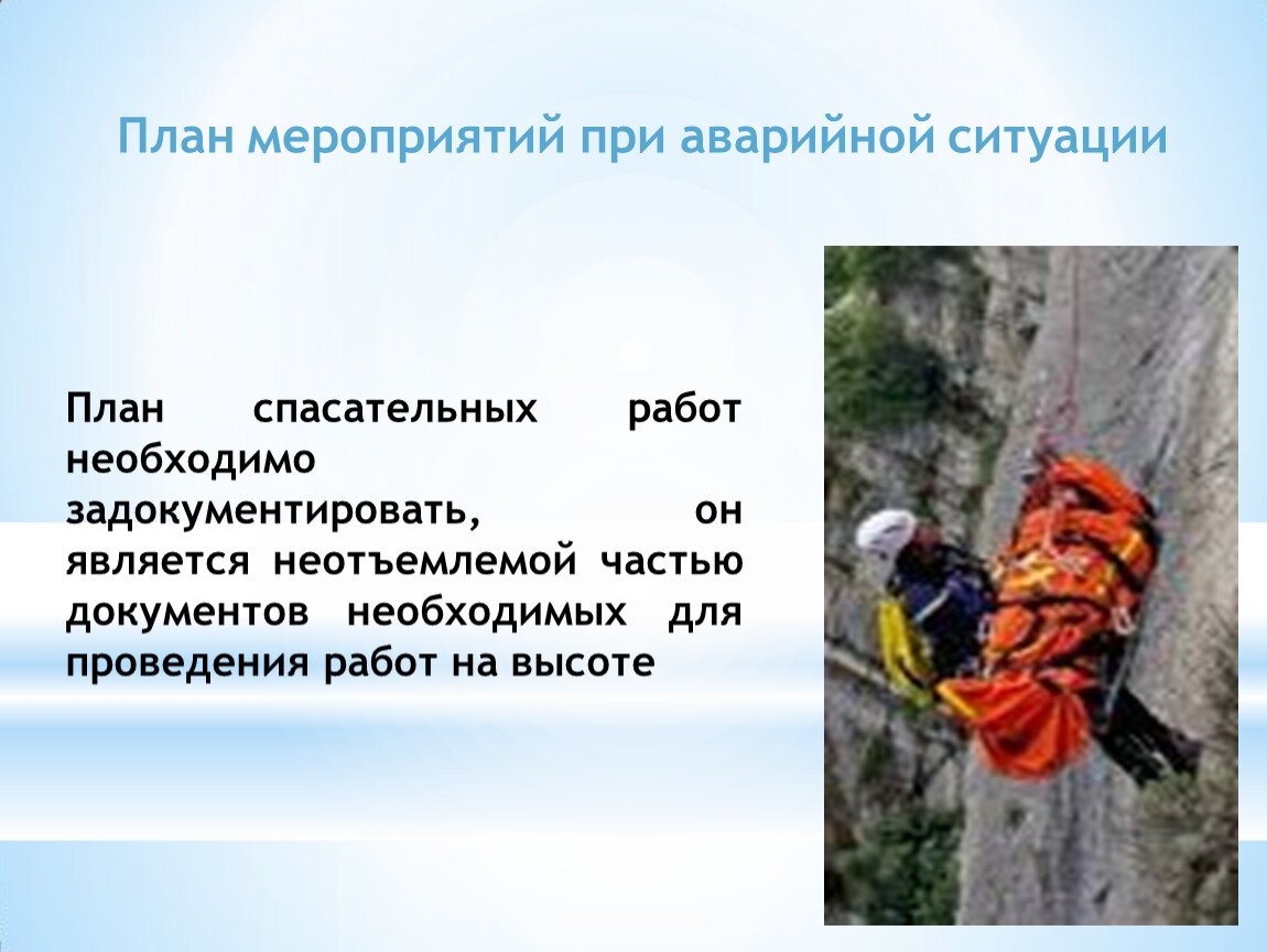 План спасательных работ необходимо задокументировать, он является неотъемлемой частью документов необходимых для проведения работ на высоте