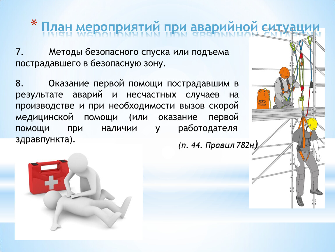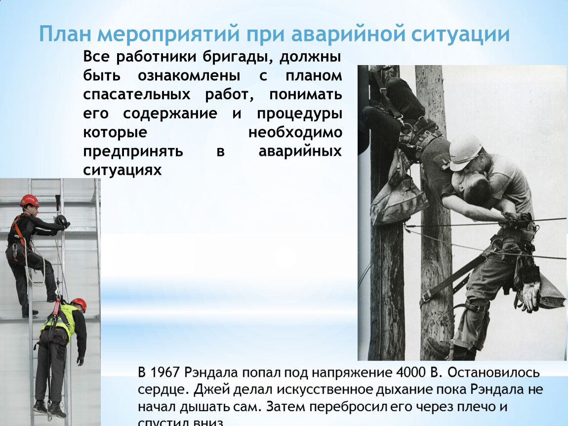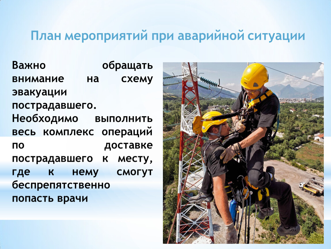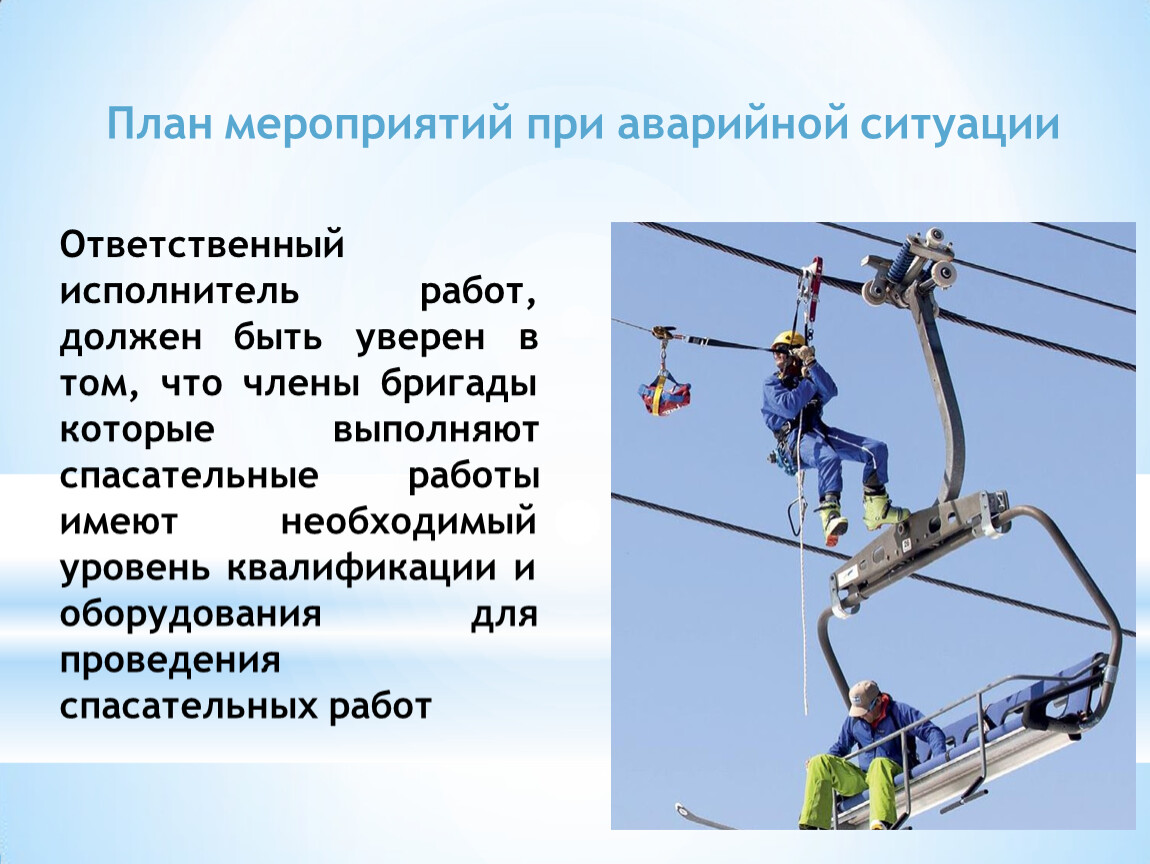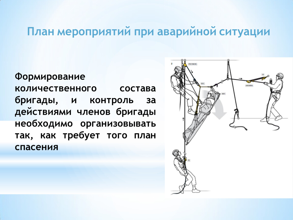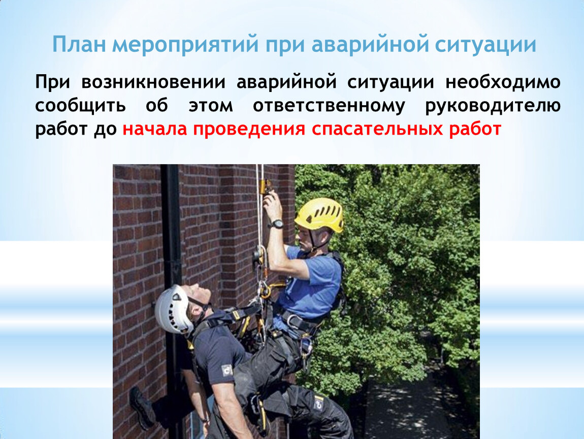 При возникновении аварийной ситуации необходимо сообщить об этом ответственному руководителю работ до начала проведения спасательных работ