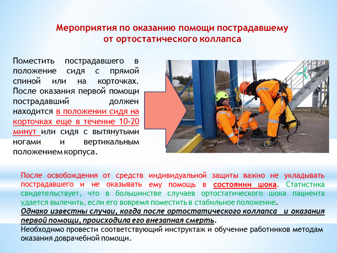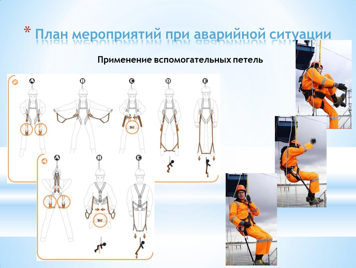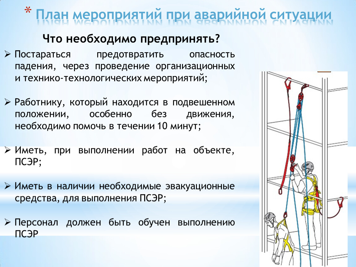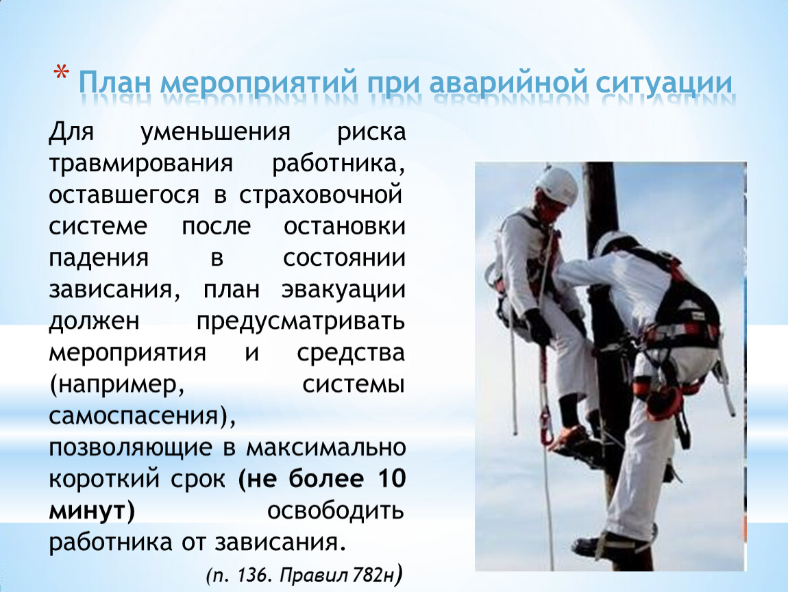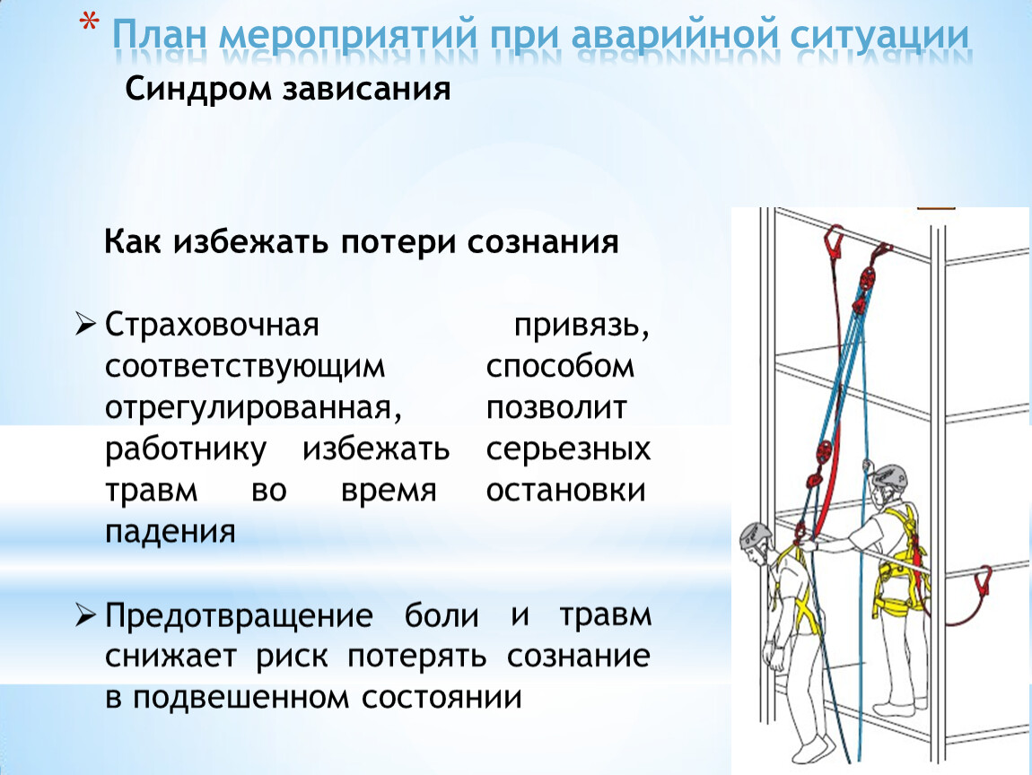 Для уменьшения риска травмирования работника, оставшегося в страховочной