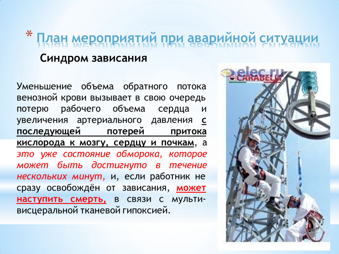позволяющие в максимально короткий срок (не более 10 минут) освободить работника от зависания.