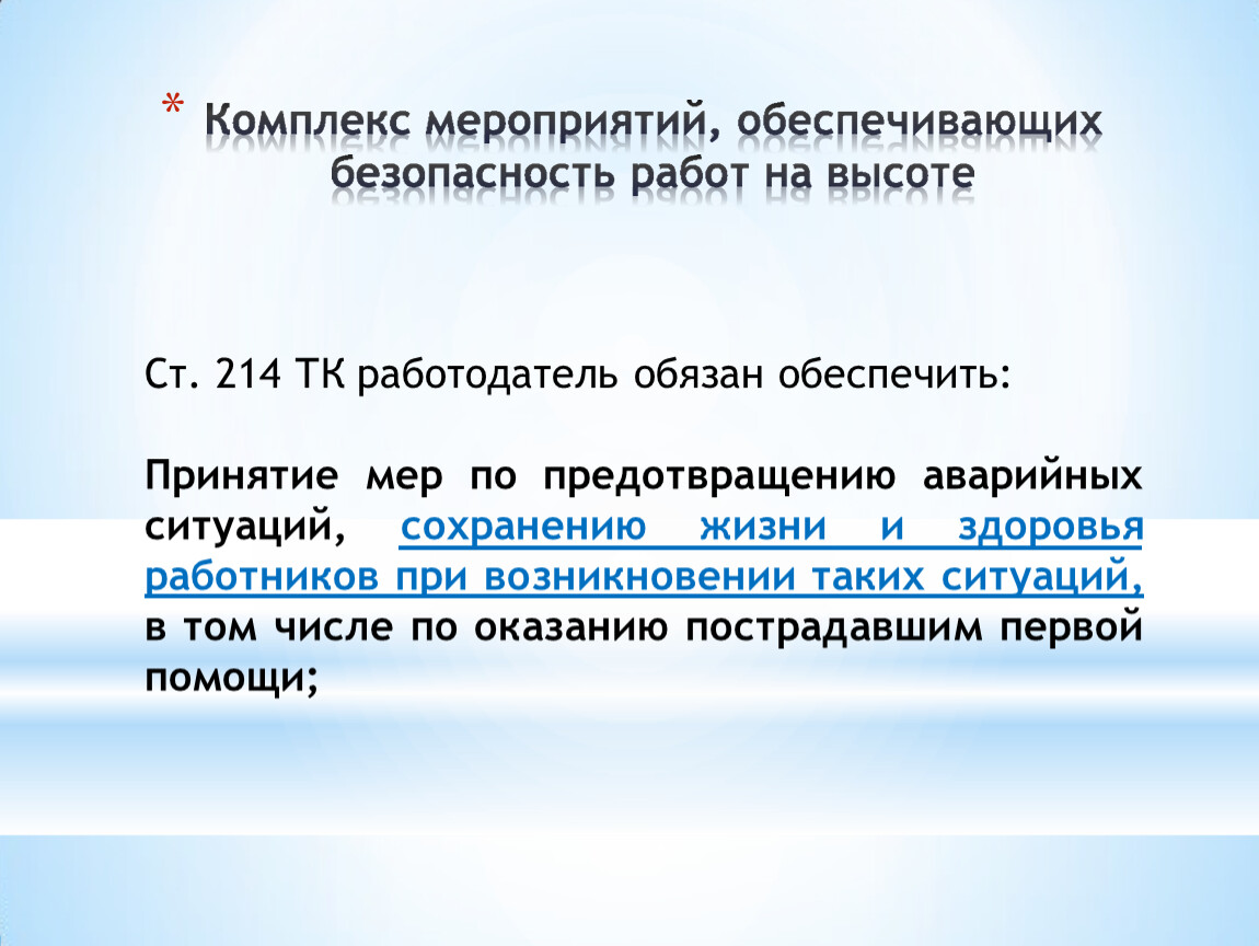 Принятие мер по предотвращению аварийных ситуаций, сохранению жизни и здоровья работников при возникновении таких ситуаций, в том числе по оказанию пострадавшим первой помощи;