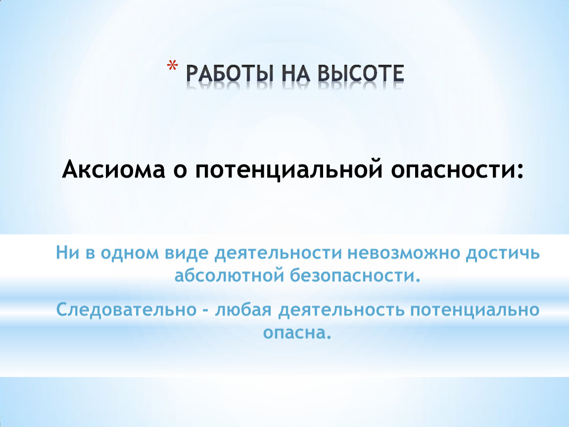 Ни в одном виде деятельности невозможно достичь абсолютной безопасности.