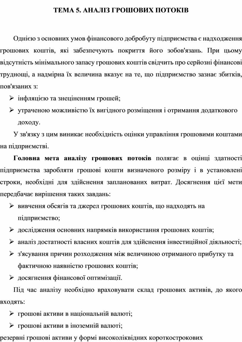 ТЕМА 5. АНАЛІЗ ГРОШОВИХ ПОТОКІВ