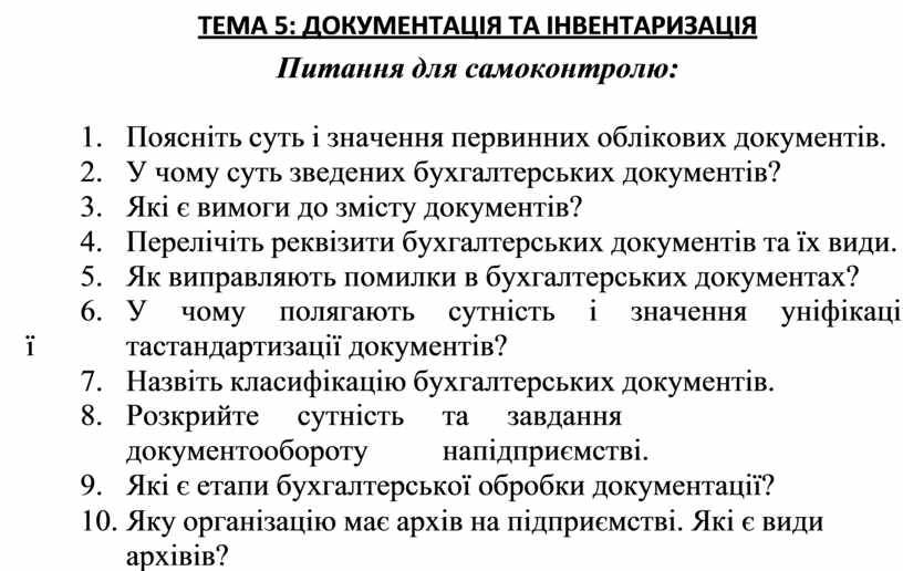 ТЕМА 5: ДОКУМЕНТАЦІЯ ТА ІНВЕНТАРИЗАЦІЯ