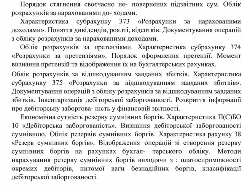 Облік розрахунків за відшкодуванням завданих збитків. Характеристика субрахунку 375 «Розрахунки за відшкодуванням завданих збитків». Документування операцій з обліку розрахунків за відшкодуванням завданих збитків. Інвентаризація дебіторської заборгованості. Розкриття інформації про дебіторську заборгова- ність у фінансовій звітності.