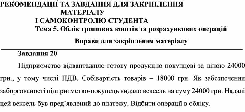 Тема 5. Облік грошових коштів та розрахункових операцій