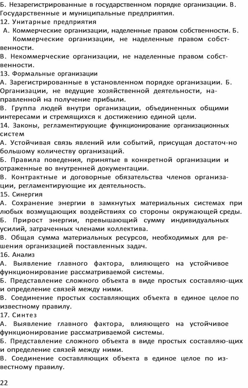 Б. Потребительские кооперативы. В. Семья, неформальные группы. 11. Неформальные организации