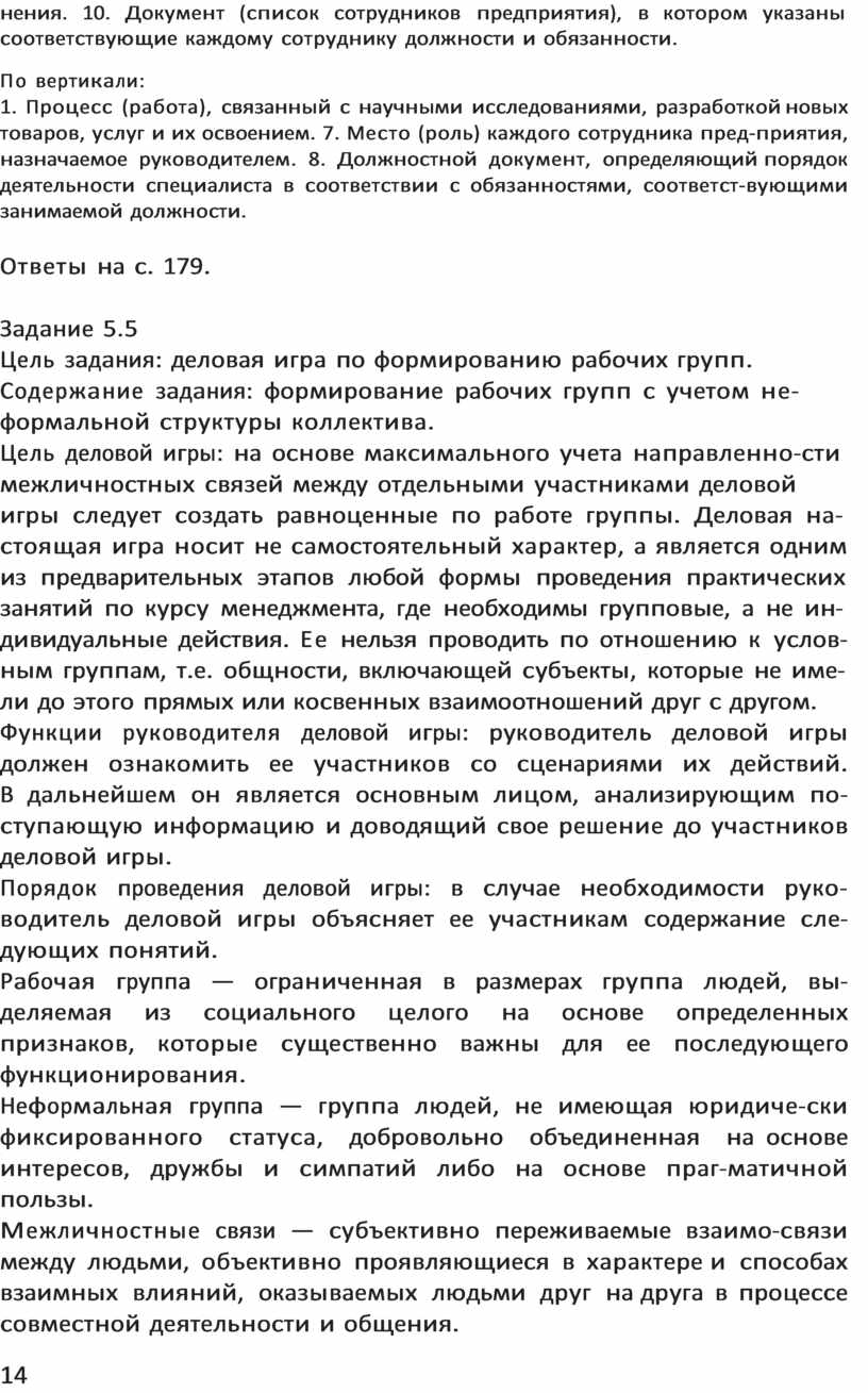 Цель деловой игры: на основе максимального учета направленно-сти межличностных связей между отдельными участниками деловой игры следует создать равноценные по работе группы. Деловая на-стоящая игра носит не самостоятельный характер, а является одним из предварительных этапов любой формы проведения практических занятий по курсу менеджмента, где необходимы групповые, а не ин-дивидуальные действия. Ее нельзя проводить по отношению к услов-ным группам, т.е. общности, включающей субъекты, которые не име-ли до этого прямых или косвенных взаимоотношений друг с другом.
