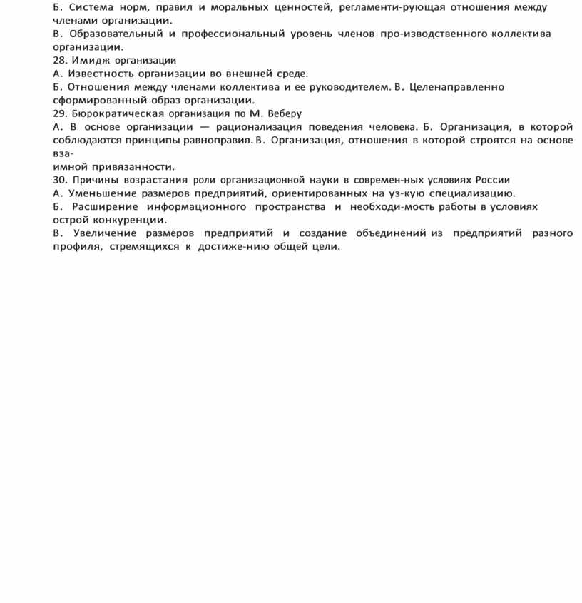 В. Цель была ранее достигнута на другом предприятии. 25. Объект организационной деятельности в организации А. Администрация.