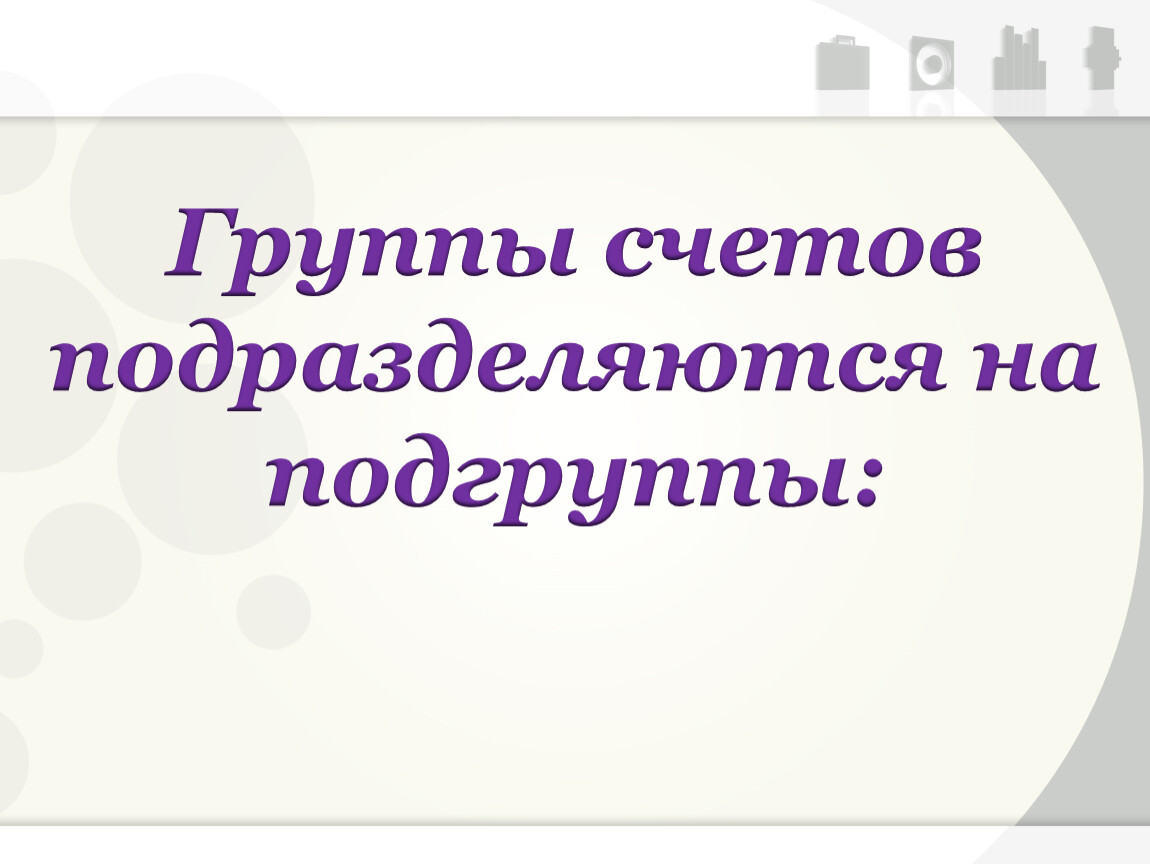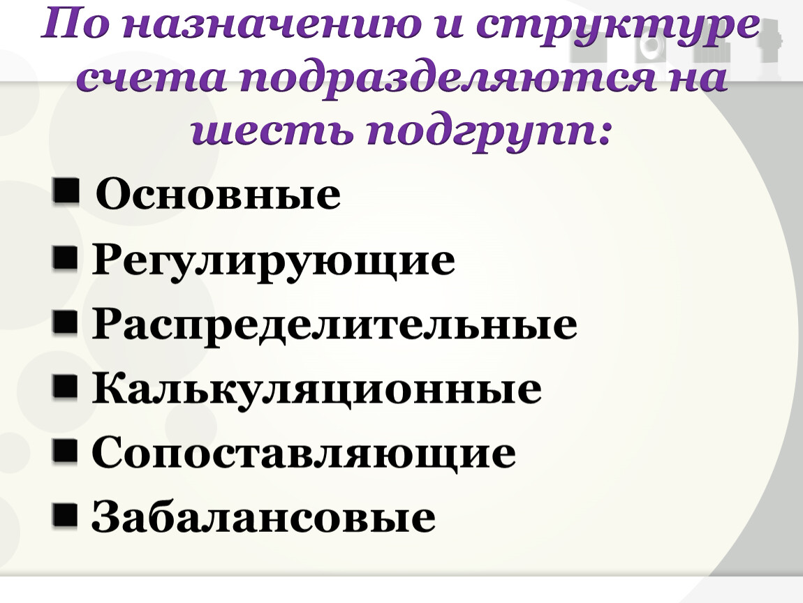 По назначению и структуре счета подразделяются на шесть подгрупп: