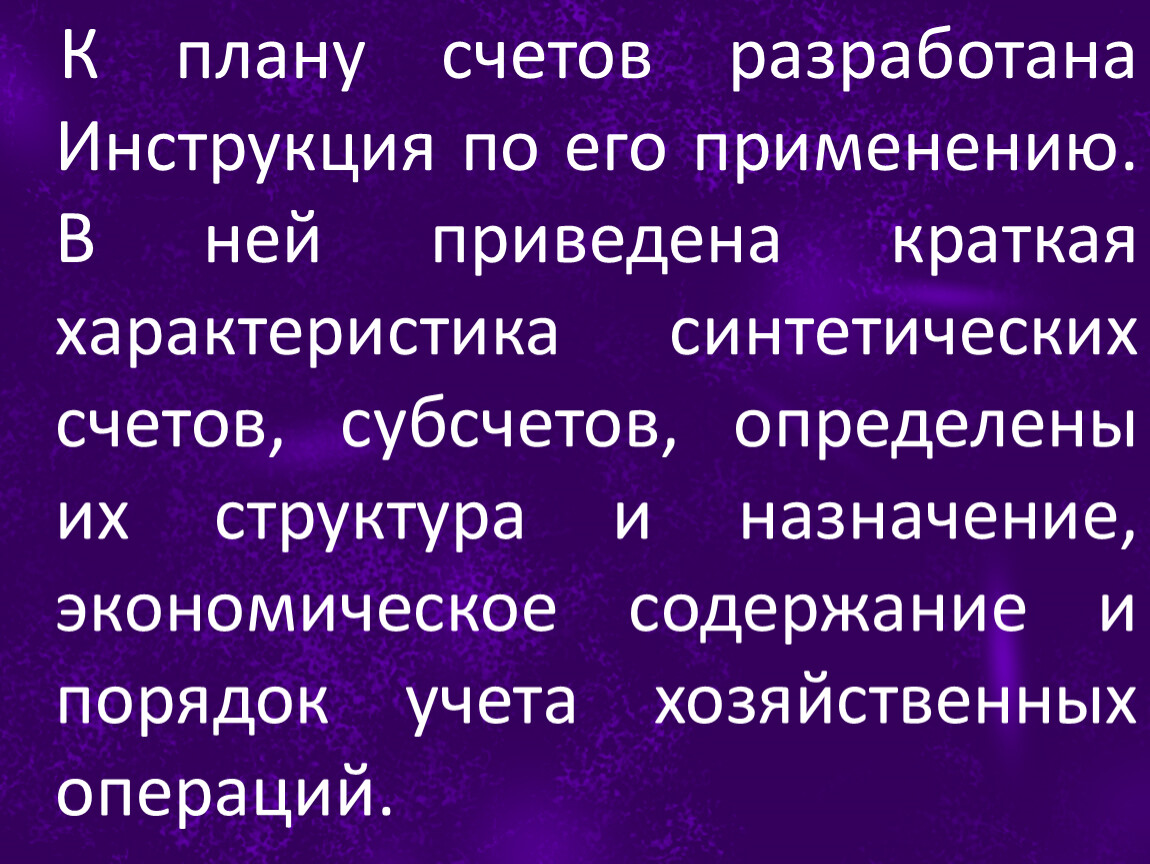 План счетов бухгалтерского учета - систематизированный перечень счетов бухгалтерского учета. Обычно в Плане счетов перечисляются счета синтетического учета и субсчета, а также дается перечень забалансовых счетов.