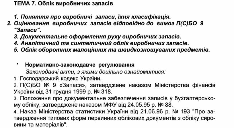 ТЕМА 7. Облік виробничих запасів