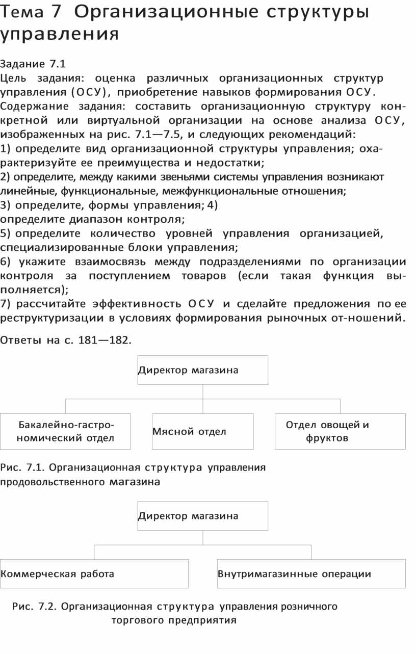 Содержание задания: составить организационную структуру кон-кретной или виртуальной организации на основе анализа ОСУ, изображенных на рис. 7.1—7.5, и следующих рекомендаций: