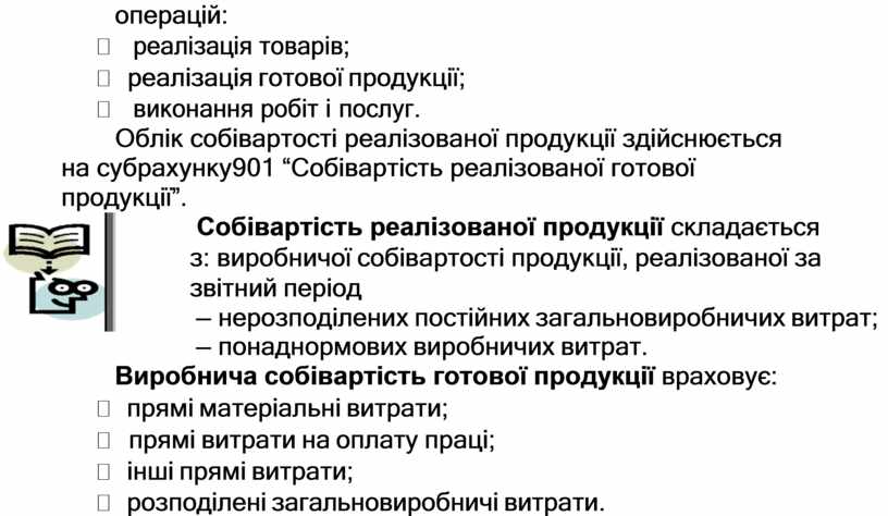 реалізованої продукції складається з: виробничої собівартості продукції, реалізованої за звітний період